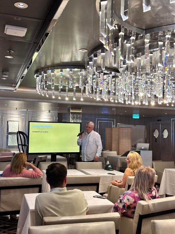 Călătoria noastră pe mare, la bordul vasului Celebrity EDGE, a continuat cu un Art Workshop susținut de Alexandre Eram, unde am aflat cu toții lucruri interesante despre arta recentă, momentul culminând cu o vânătoare de comori.