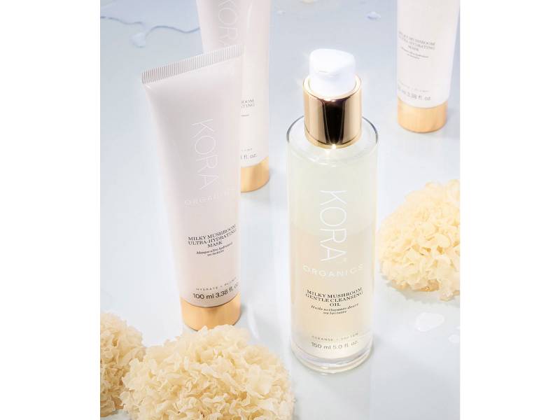KORA Organics Milky Mushroom Gentle Cleansing Oil este exemplul perfect de formulă adaptată sezonului rece: o textură bifazică ce se transformă într-un lapte mătăsos, capabil să dizolve machiajul, impuritățile și poluarea fără a compromite hidratarea. Pielea rămâne suplă, curată și calmă — exact starea de care are nevoie înainte de noapte.