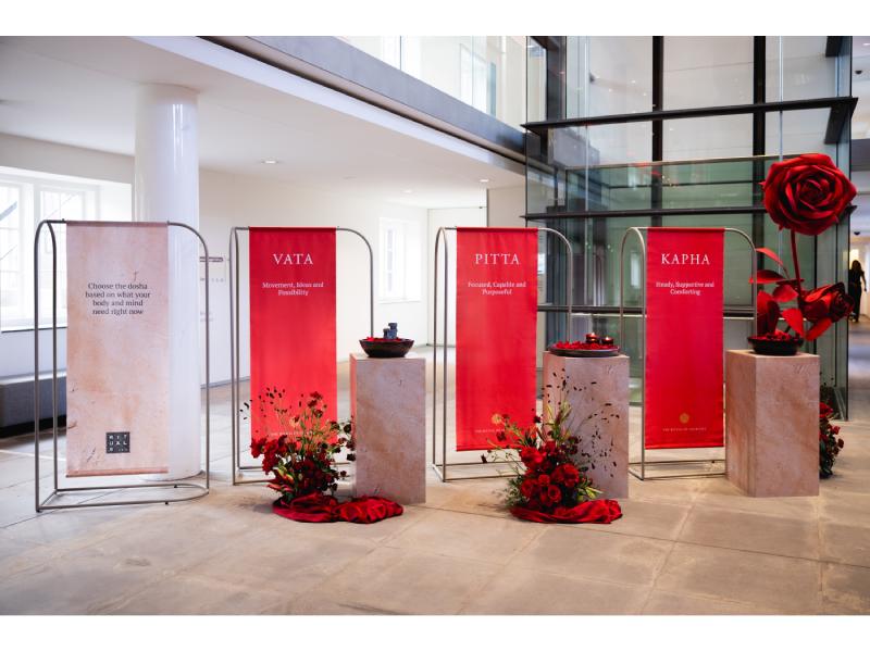La H’Art Museum, ne-am făcut intrarea pe aleea spectaculoasă din curtea interioară, cu buchete impresionante de flori roșii. Au urmat sesiunile foto, dar și momente inspiraționale: de la discursul de bun-venit, la prezentarea gamei, la gențile pe care le-am făcut chiar și fără experiență anterioară, la autocunoaștere. Am aflat că echilibrul nu vine din Dosha cea mai bună, ci din alegerea rutinei potrivite fiecărei Dosha, astfel încât să fii în armonie cu tine oricât de calmă sau de vulcanică ai fi. Iar asta înseamnă că alegerile încep cu hrana aleasă și se încheie cu ingredientele din gamele folosite în îngrijirea corpului.