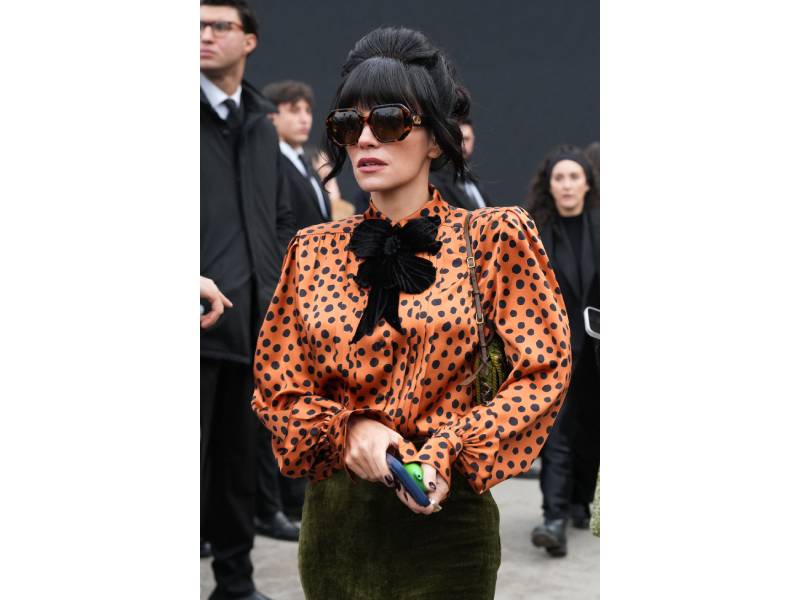 Lily Allen a purtat un ’60s-inspired updo (coafură voluminoasă cu textură), combinat cu un machiaj natural-elegant care a subliniat ochii fără a fi prea dramatic. Buzele se mențin în nuanțe naturale, cu un contur vizibil. Artistă britanică a revenit în lumina reflectoarelor cu proiecte muzicale noi după o perioadă de pauză, iar prezența la Paris a confirmat interesul ei crescut pentru modă.