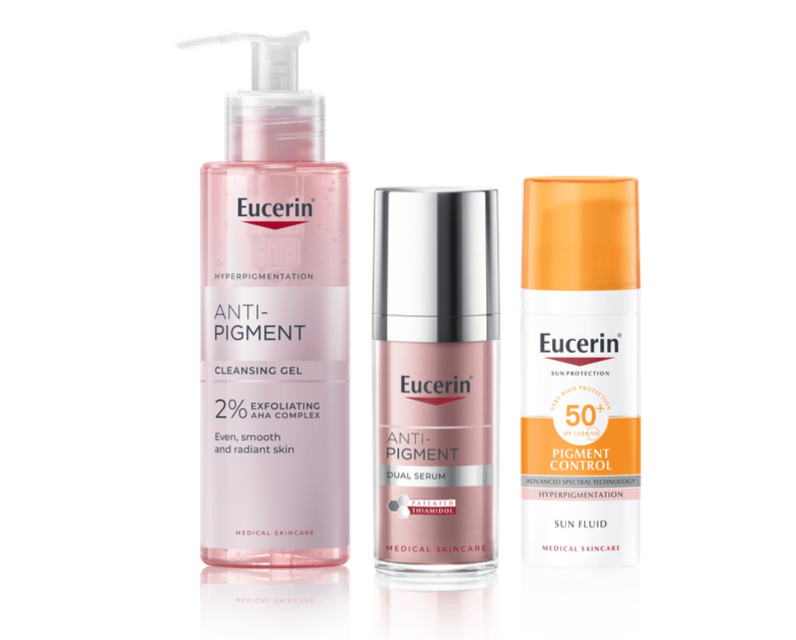 În jurul acestei descoperiri, Eucerin a creat gama Anti-Pigment: un protocol complet de îngrijire, conceput pentru a integra Thiamidol în fiecare etapă a rutinei zilnice. Serumul Dual Anti-Pigment, gelul delicat de curățare și crema cu protecție solară formează împreună un ritual care abordează problema petelor pigmentare din mai multe unghiuri, protejând pielea și susținându-i procesul de regenerare. Formulele sunt dezvoltate împreună cu dermatologi și sunt recomandate pentru rezultate vizibile și sigure.