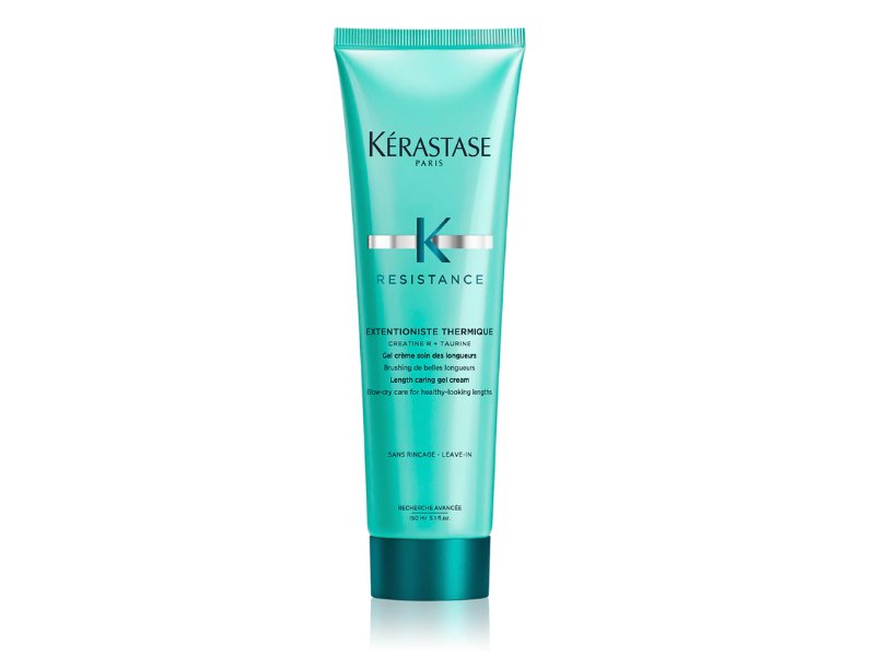 Crema de tip gel pentru termoprotecție Kérastase Résistance Extentioniste Thermique regenerează și reîntregește imediat fibrele de păr deteriorate. Contribuie astfel durabil la aspectul sănătos al părului, pe toată lungimea sa.