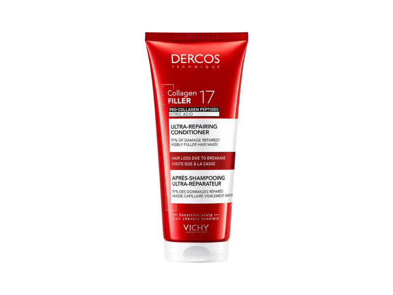 Beneficiile sunt multiple: Dercos Collagen 17 FILLER repară 5 ani de deteriorare a părului într-o singură utilizare*, redă vitalitatea de la rădăcină și oferă cu până la +29% mai mult volum (*test instrumental după aplicarea protocolului de îngrijire).