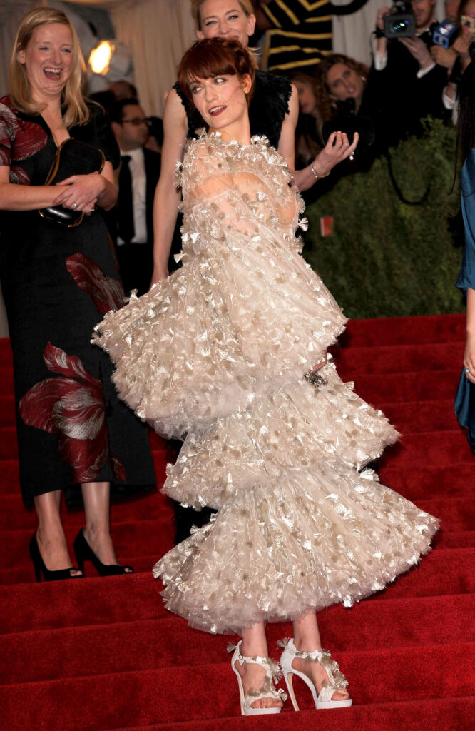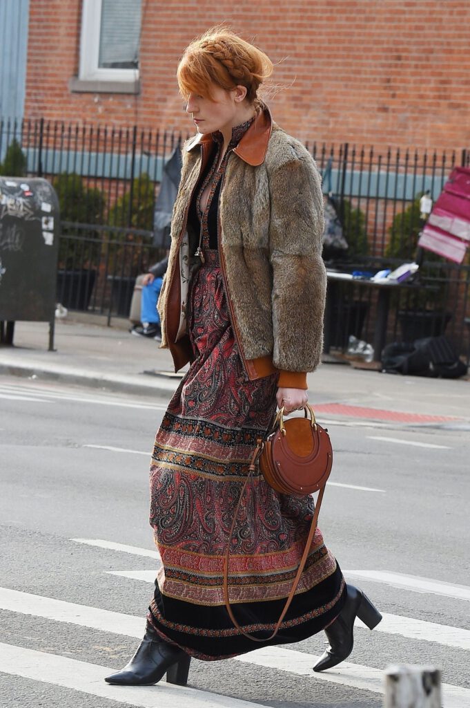 Este puțin probabil să nu fi ascultat măcar o piesă Florence and the Machine, cu vocea inconfundabilă a artistei care îți trezește fiecare celulă prin timbrul electrizant, cu o extrem de mare încărcătură emoțională. Iar toată această emoție este transpusă în fiecare gest al lui Florence Welch (35), de la stilul vestimentar, la pasiunea pentru poezie sau pentru mici crochiuri simbolice pe care le face. Părul roșcat, dansul unic din timpul concertelor, tatuajele și aerul Woodstock ce o însoțește permanent, o transformă într-una dintre cele mai fascinante figuri contemporane, care are grijă să ne transpună întotdeauna în timpurile în care lumea părea un loc mai liniștit. Totul marcat de printuri florale, de voaluri, de bijuterii vintaje și de pantofi cu platformă.