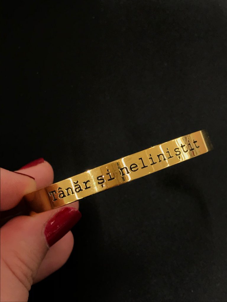 Și dacă tot am pomenit de îndrăgosteală, nu știu dacă, dintre tot ce este acum la Alist Designers boutique, există ceva mai elocvent pentru zilele noastre, decât brățara de la Flash Jewels inscripționată cu „Tânăr și neliniștit”. Dacă nu ești neapărat neliniștit/ă, ma bazez pe faptul că instant ai început să rememorezi celebrul generic al unuia dintre cele mai longevive seriale create vreodată. Nostalgie?