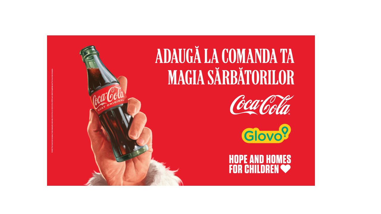 De Crăciun, Coca-Cola și Glovo și-au unit forțele pentru a oferi pachete alimentare familiilor vulnerabile, sprijinite de Fundația Hope and Homes for Children. Campania se desfășoară între 8 și 22 decembrie, iar Coca-Cola donează 50 de bani pentru fiecare produs din portofoliul Coca-Cola comandat prin aplicația Glovo.