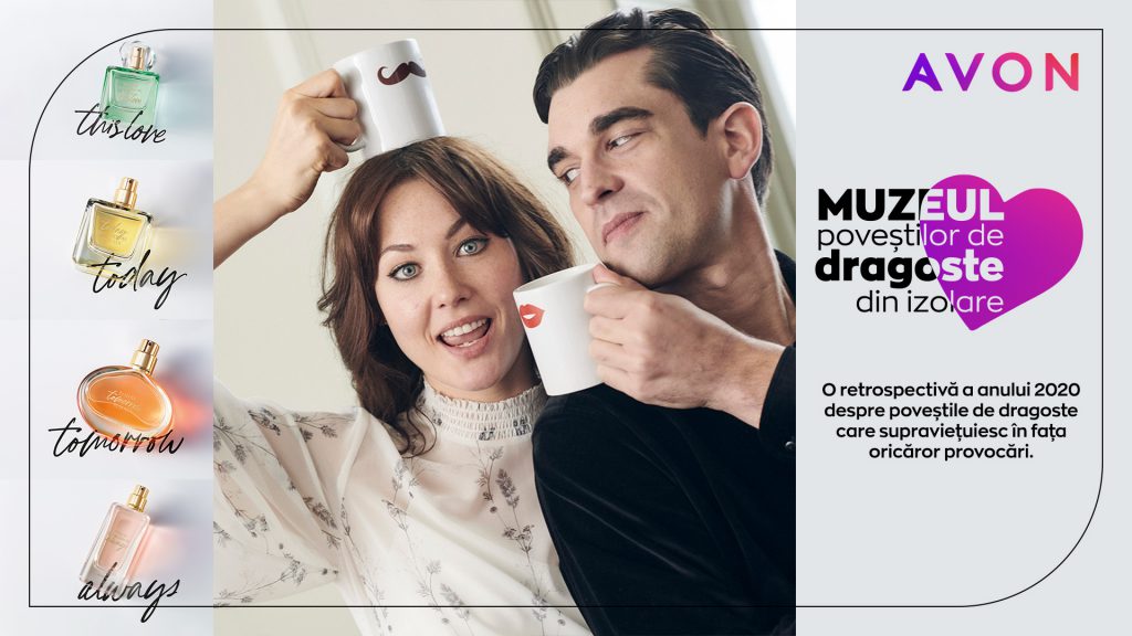 AVON lansează Muzeul Poveștilor de Dragoste din Izolare, o colecție virtuală a poveștilor de dragoste din perioada izolării și a obiectelor care le definesc, inspirată de colecția de parfumuri This Love. Today. Tomorrow. Always. Muzeul este găzduit pe platforma Instagram @DragosteaDinIzolare și își propune să realizeze o retrospectivă a anului 2020 despre ,,testul” prin care au trecut relațiile de cuplu, cu scopul de a celebra dragostea care supraviețuiește în fața oricărei provocări – și nu oricum, ci cu multe povești de spus. Oricine poate înscrie povești, iar AVON invită cuplurile să contribuie cu un ,,exponat” la muzeu.