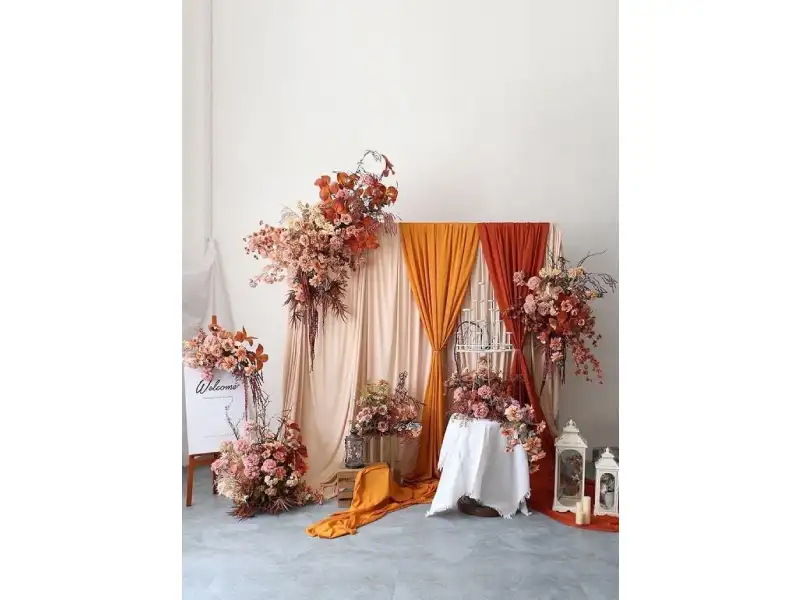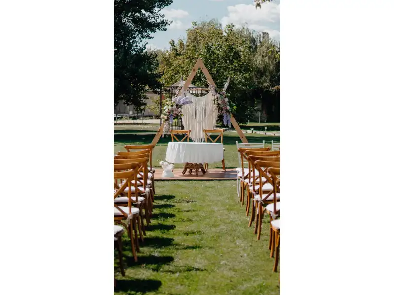 Eu folosesc adesea combinații de pampas, flori proaspete de sezon, texturi naturale și pânze fluide, montate pe o structură de lemn. Rezultatul? Un decor care pare desprins dintr-o poveste de vară, ideal pentru ceremonii în grădină sau pentru poze de cuplu.