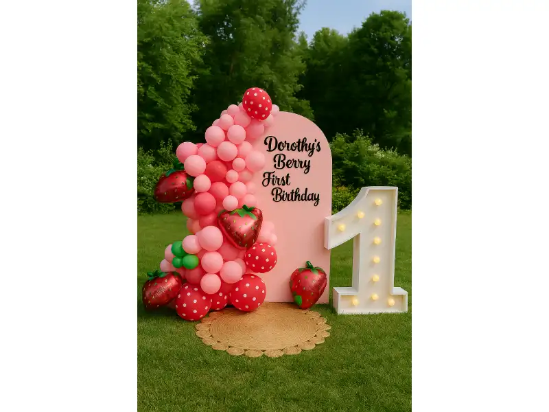 Sfat de la mine: folosește baloane în nuanțe mate sau pastel și completează cu texturi florale naturale pentru un efect elegant, nu copilăresc.
