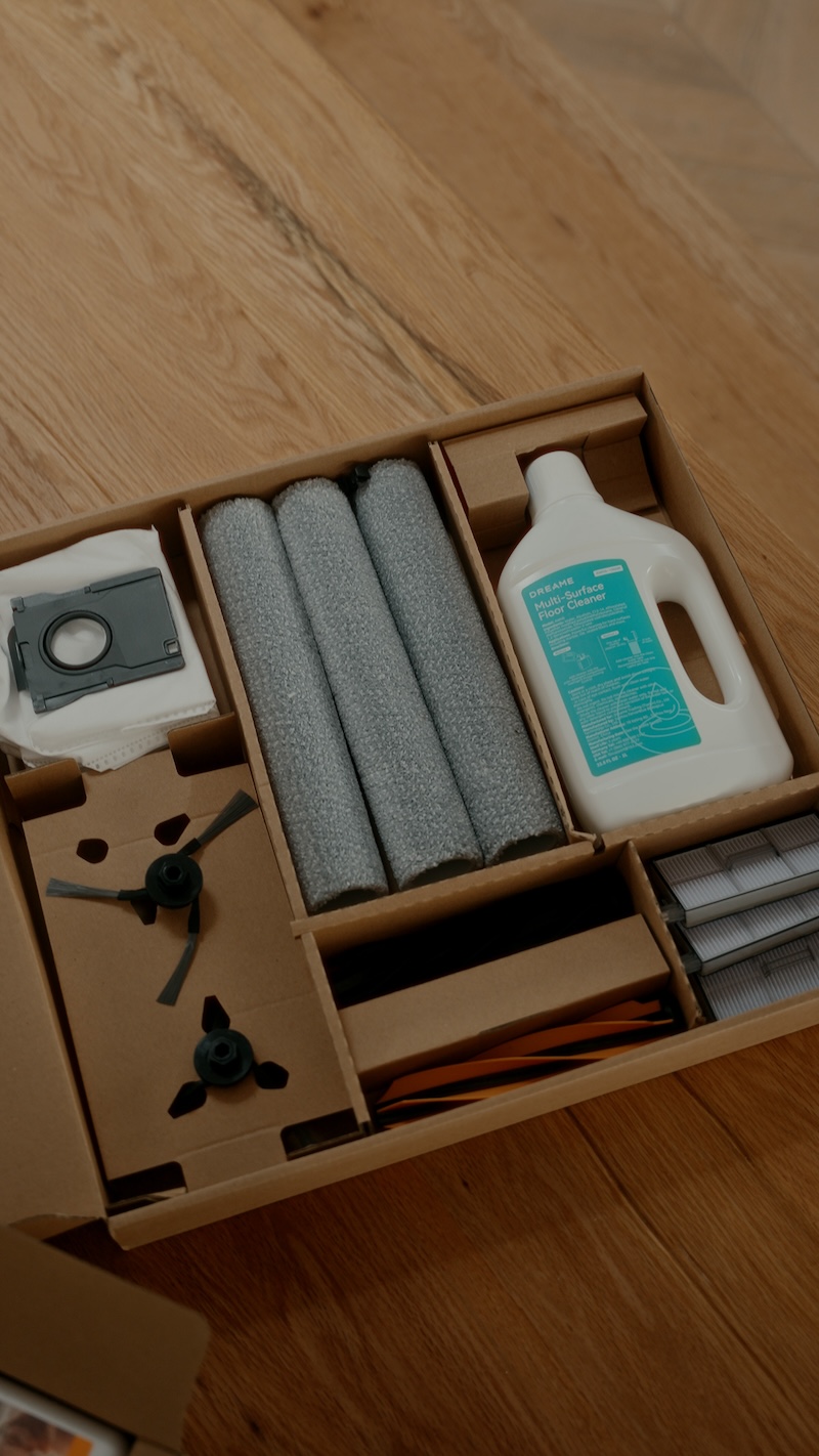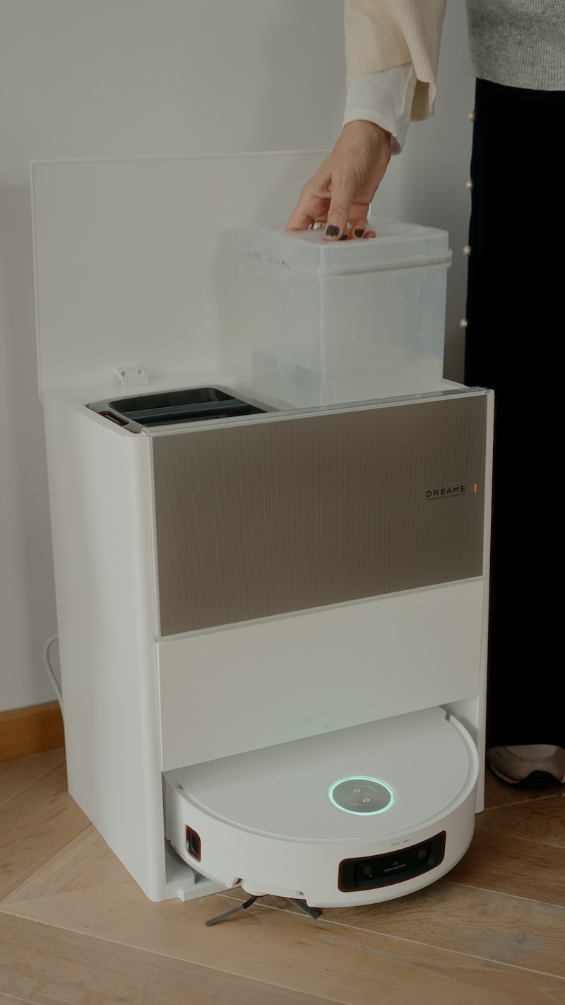 Dacă ar fi să-l definim în câteva cuvinte, am zice că Dreame Aqua10 Ultra Roller Complete este mai eficient ca un aspirator obișnuit și lasă curat în urmă mai ceva decât o armată de mopuri. Dar mai are câteva caracteristici pe care le-am găsit impresionante: pentru că tot am adus vorba despre mopuri, imaginați-vă un pic: cum ar fi ca, după ce cafeaua e curățată de pe gresie, nici să nu trebuiască să cureți mopul, să îl storci, să îl speli pentru următoarea sesiune de curățenie? Ei bine, după încheierea sesiunii de curățenie, Aqua10 se întoarce în stație și începe o spălare cu apă fierbinte cu adevărat impresionantă. Sistemul ThermoHub™ încălzește apa până la 100°C și spală rollerul cu o forță și o temperatură care amintesc mai degrabă de un aparat profesional decât de un robot de aspirare. Grăsimea, reziduurile și chiar mirosurile subtile pe care le aștepți de la mopurile obișnuite dispar complet. Când rollerul iese din ciclul de curățare, arată și miroase ca nou. Bonus: în pachetul aspiratorului ai și role și saci de rezervă, soluții de curățat (chiar și unele speciale pentru casele cu animale) iar recipientul cu apă murdară se golește dintr-o singură mișcare. Așadar, notați: 100°C ThermoHub™ Self-Cleaning – igienizare la nivel profesional.