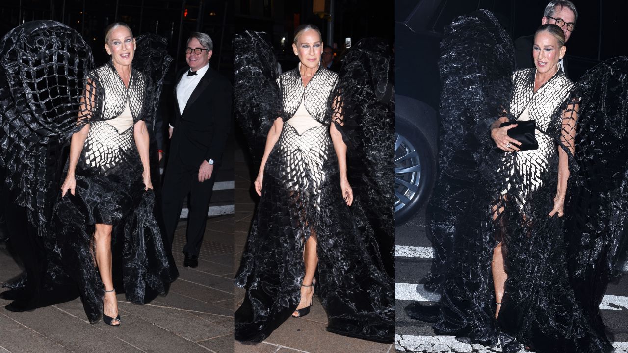Ținuta aleasă de actriță este o combinație între romantism și estetica couture contemporană. Rochia fluidă, cu straturi de tulle fin, a avut ca element central aripile din pene negre, aplicate manual. Sarah Jessica Parker și-a completat lookul cu un machiaj discret, un coc lejer și bijuterii minimaliste, lăsând ținuta să vorbească de la sine.