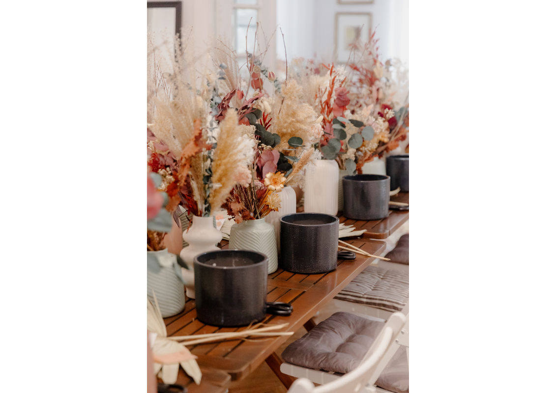 Într-un atelier floral, acest lucru este esențial. Participanții pleacă acasă cu un obiect care ramane al lor. Nu este efemer. Nu se ofilește în câteva zile. Devine parte din decorul lor personal. Iar asta schimbă complet percepția asupra experienței.